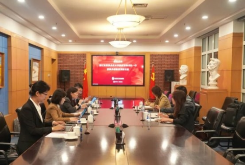 浙江建设职业技术学院党委委员徐丹、国际处处长吴芳,外研在线国际合作与业务创新部总监贺娜、海外合作经理杜媛媛、院校合作经理吕洋共同参加座谈。