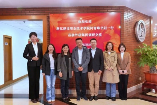 2025年10月9日,浙江建设职业技术学院党委书记何青峰一行到访外语教学与研究出版社(简称外研社)、北京外研在线数字科技有限公司(简称外研在线)调研交流。外研社社长助理李会钦,北京外国语大学教育学院常务副院长、“中非大学联盟”交流机制中方秘书处秘书长苑大勇会见何青峰书记一行,双方围绕职业教育国际化语言服务、建筑行业人才培养、校企合作等方面进行深入交流。
