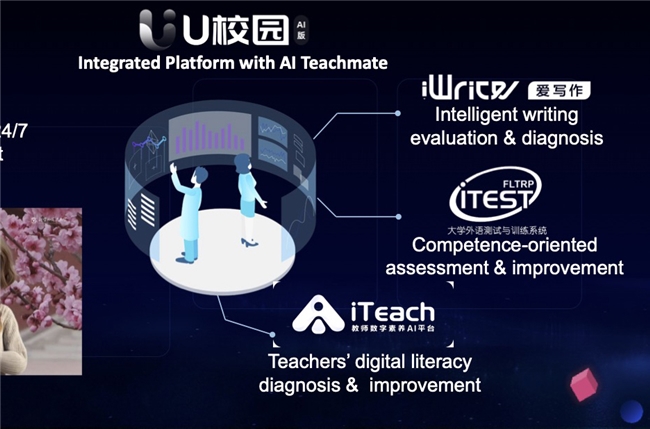 赵刚副校长介绍,北京外国语大学作为中国教育部人工智能助推教师队伍建设首批试点高校,积极探索人工智能与外语教育深度融合的“四轮驱动”实践模式。第一,通过人工智能与人类语言重点实验室、系列丛书与期刊、智慧课程与系统等,以“BFUS·AI”赋能外语教育研究;第二,依托中国高校外语慕课联盟创建中国高校外语慕课平台(UMOOCs),推进以人工智能为核心、深度融合信息技术的智慧慕课新生态,以智慧课程重构能力培养载体;第三是开发校园智能中枢,在教学全流程中融入U校园智慧教学云平台AI版、AI数字人助教、iWrite英语写作与教学评阅系统、iTEST智能测评云平台与iTeach教师数字素养AI平台等,以智能平台筑牢个性化支撑基石;第四是发布全球语言服务平台,利用数智技术将校内多语种资源与全球语言需求精准对接,以生态服务拓展社会赋能价值。
